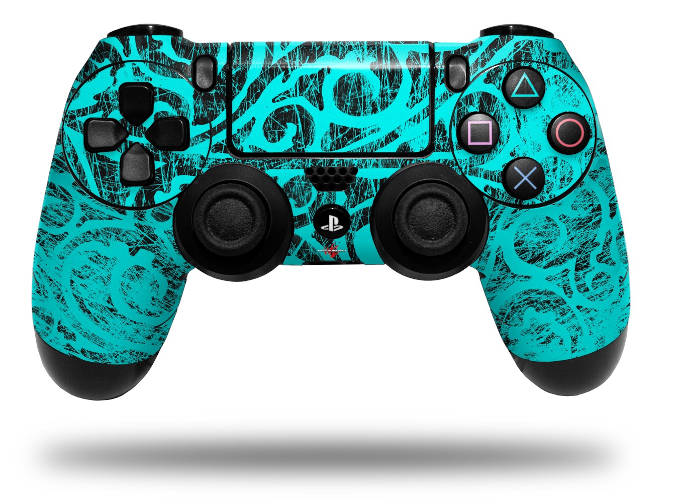 WraptorSkinz Skin compatible with Sony PS4 Dualshock Controller PlayStation 4 Original Slim and Pro Folder Doodles Neon Teal (CONTROLLER NOT INCLUDED)