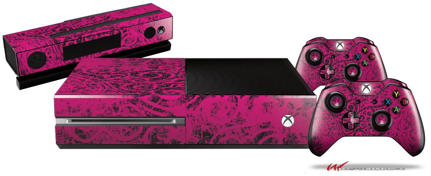 Folder Doodles Fuchsia - Holiday Bundle Decal Style Skin fits XBOX One Console Original, Kinect and 2 Controllers (XBOX SYSTEM NOT INCLUDED)
