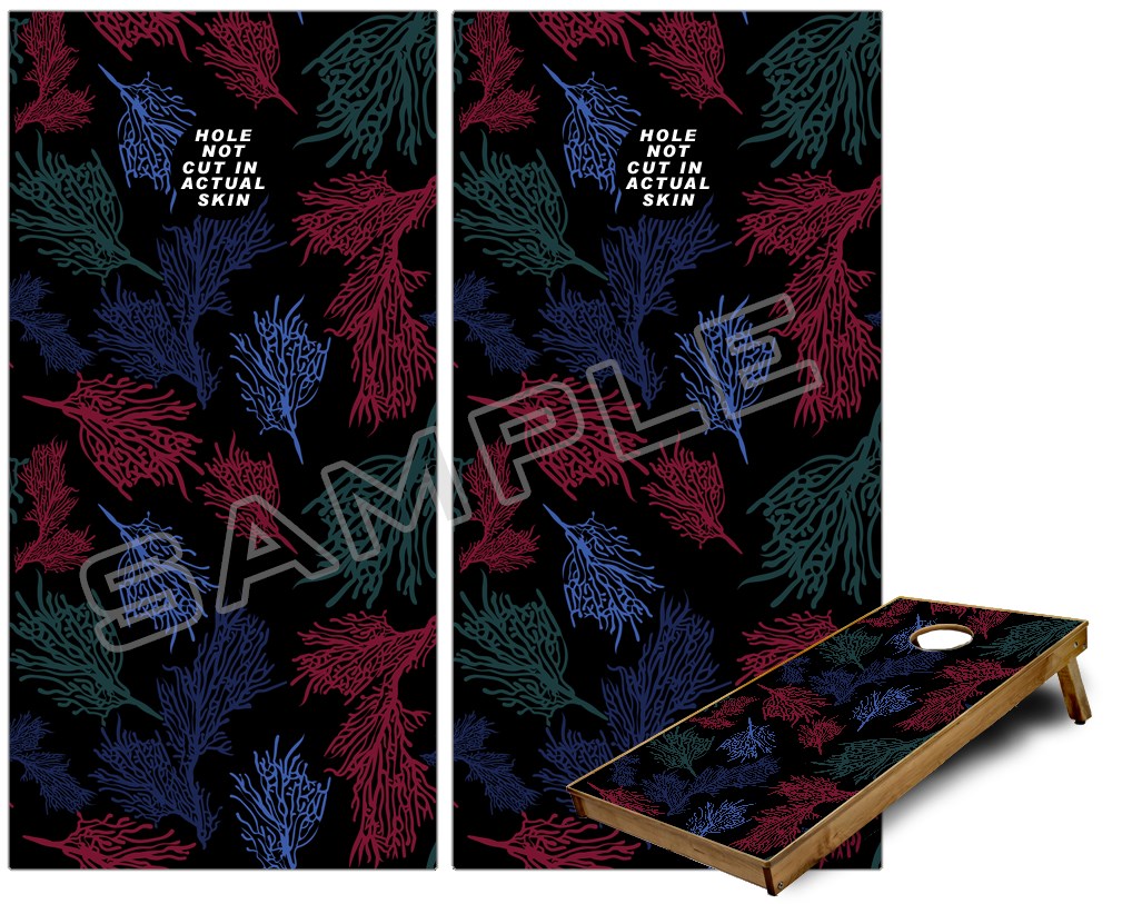 Cornhole Game Board Vinyl Skin Wrap Kit - Floating Coral Black fits 24x48 game boards (GAMEBOARDS NOT INCLUDED)