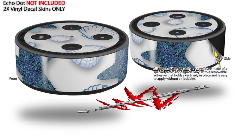 Skin Wrap Decal Set 2 Pack for Amazon Echo Dot 2 - Starfish and Sea Shells White (2nd Generation ONLY - Echo NOT INCLUDED)