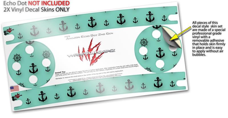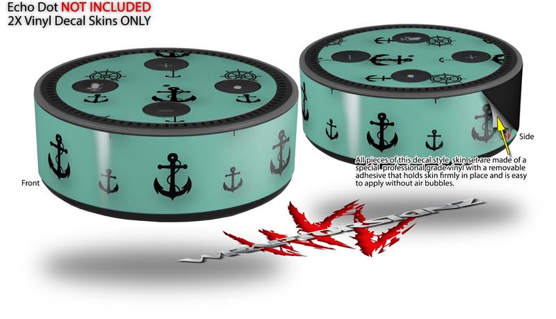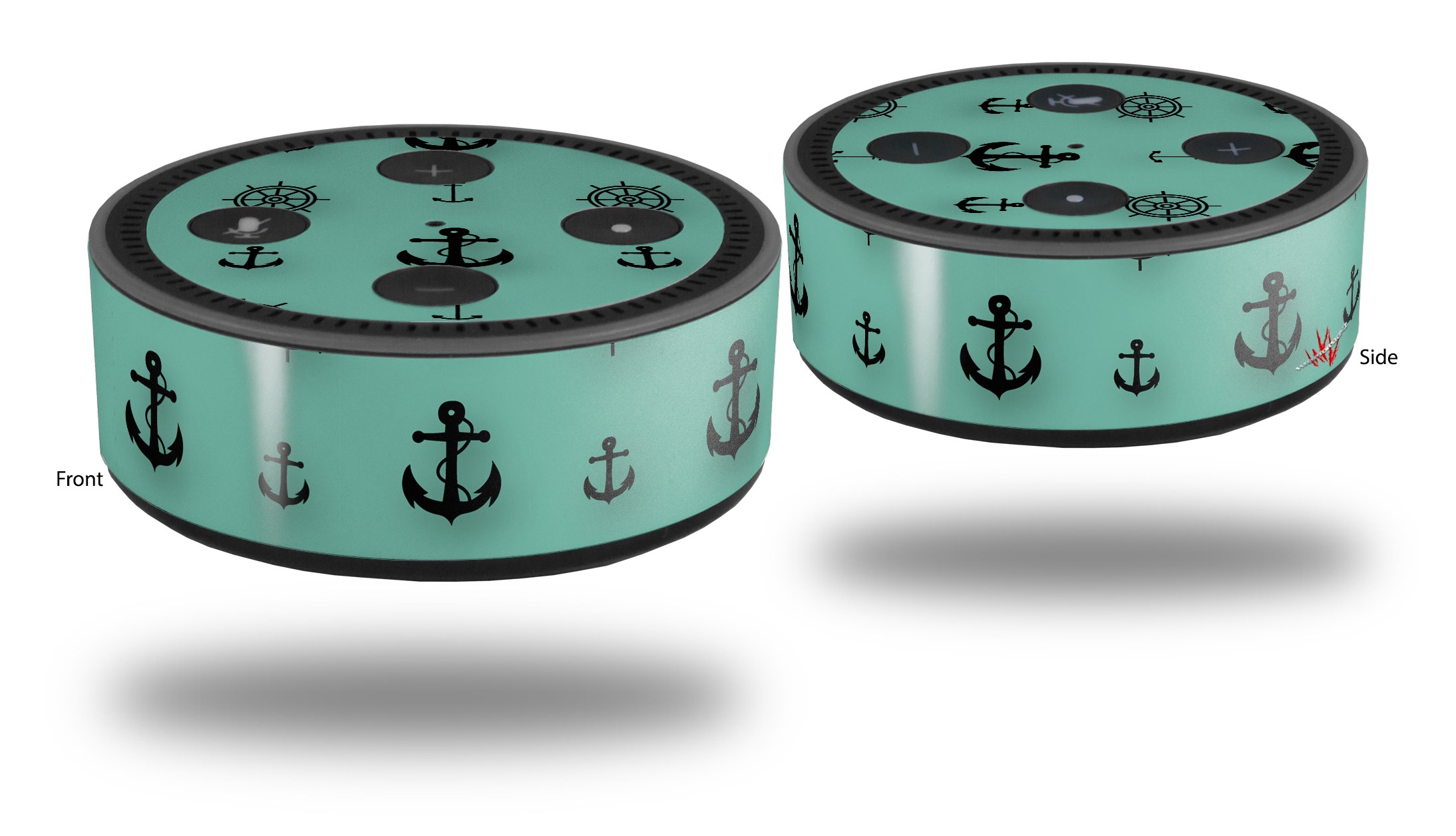 Skin Wrap Decal Set 2 Pack for Amazon Echo Dot 2 - Nautical Anchors Away 02 Seafoam Green (2nd Generation ONLY - Echo NOT INCLUDED)