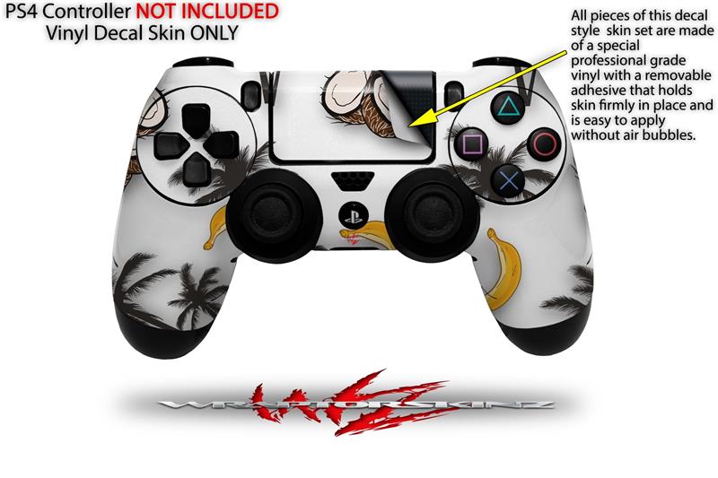 WraptorSkinz Skin compatible with Sony PS4 Dualshock Controller PlayStation 4 Original Slim and Pro Coconuts Palm Trees and Bananas White (CONTROLLER NOT INCLUDED)