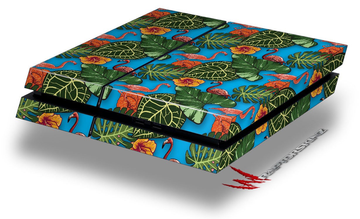 Vinyl Decal Skin Wrap compatible with Sony PlayStation 4 Original Console Famingos and Flowers Blue Medium (PS4 NOT INCLUDED)