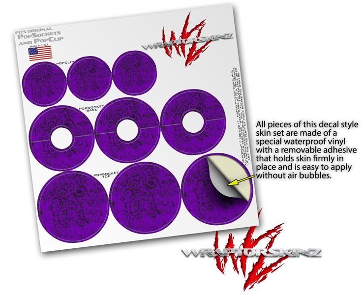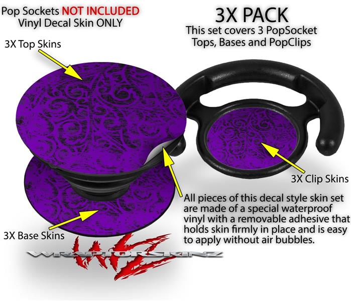 Decal Style Vinyl Skin Wrap 3 Pack for PopSockets Folder Doodles Purple (POPSOCKET NOT INCLUDED)