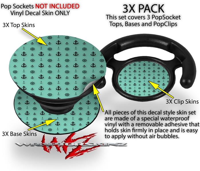 Decal Style Vinyl Skin Wrap 3 Pack for PopSockets Nautical Anchors Away 02 Seafoam Green (POPSOCKET NOT INCLUDED)