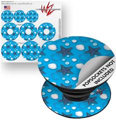 Decal Style Vinyl Skin Wrap 3 Pack for PopSockets Starfish and Sea Shells Blue Medium (POPSOCKET NOT INCLUDED)