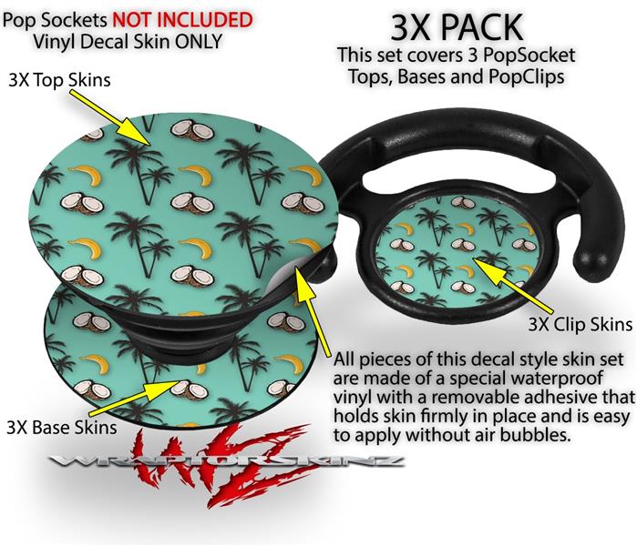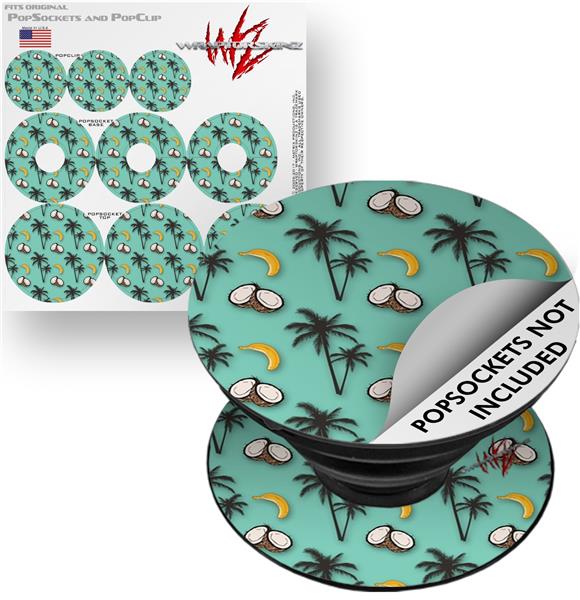 Decal Style Vinyl Skin Wrap 3 Pack for PopSockets Coconuts Palm Trees and Bananas Seafoam Green (POPSOCKET NOT INCLUDED)