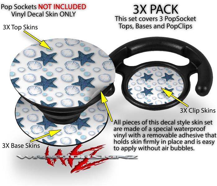 Decal Style Vinyl Skin Wrap 3 Pack for PopSockets Starfish and Sea Shells White (POPSOCKET NOT INCLUDED)